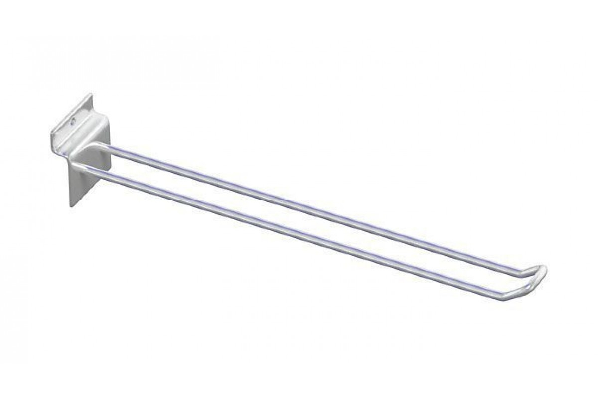 Еврокрючок хромированный. Мало где описаны преимущества двойных крючков (еврокрючки). В основном еврокрючки идут на экономпанель и могут использоваться для всех видов товара. Такая конструкция: экономпанель + еврокрючок очень устойчивая и может выдержи