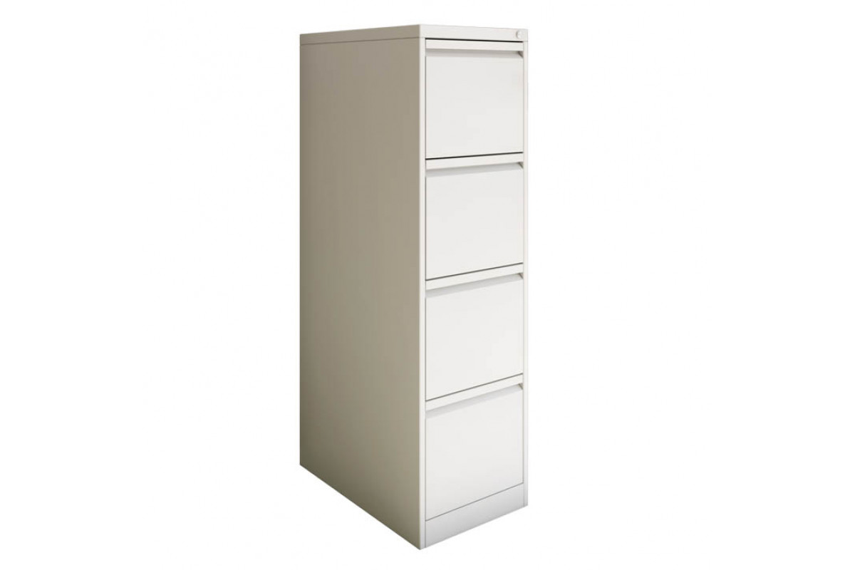 Шкаф оснащён четырьмя выдвижными ящиками, установленными на шариковых направляющих полного выдвижения. Это позволяет полностью использовать глубину ящиков, легко просматривать содержимое и обеспечивать быстрый доступ к документам. Каждый ящик выдерживает нагрузку до 30 кг, а благодаря встроенной планке-держателю папок формата A4 документы всегда остаются аккуратно организованными. Сборная конструкция ящика выполнена из стальных деталей толщиной 0,4–0,5 мм и имеет безопасные загибы по кромкам.