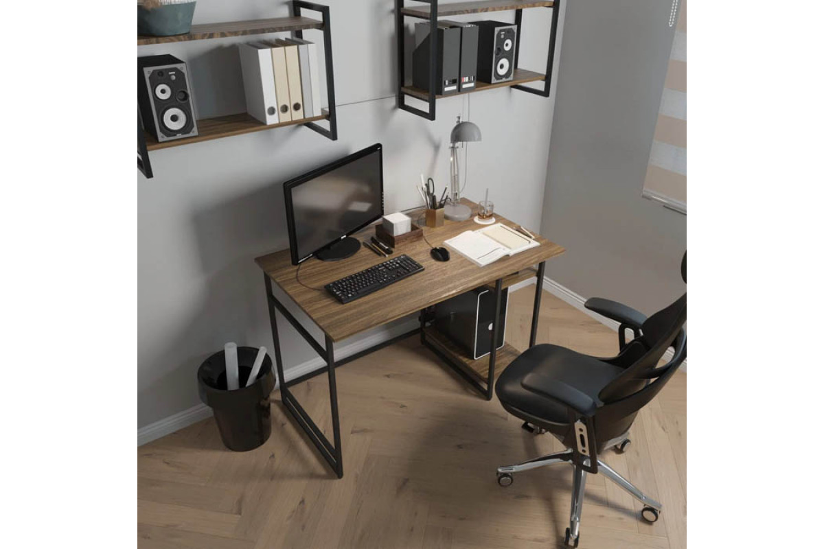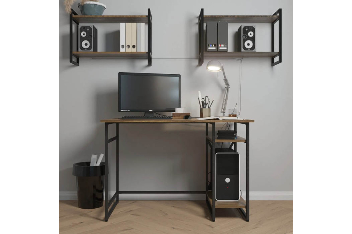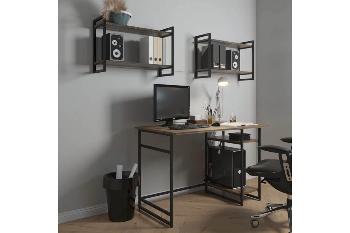 Письменный стол GUTTA — это стильное решение для вашего рабочего пространства. Он выполнен в стиле лофт и имеет размеры 76х111х68 см, что позволяет комфортно разместить все необходимые вещи. Каркас стола изготовлен из качественной конструкционной стали и окрашен в черный или белый цвет. В комплект входят две полки из ЛДСП, которые могут быть коричневого, патинированного или эвок цвета.