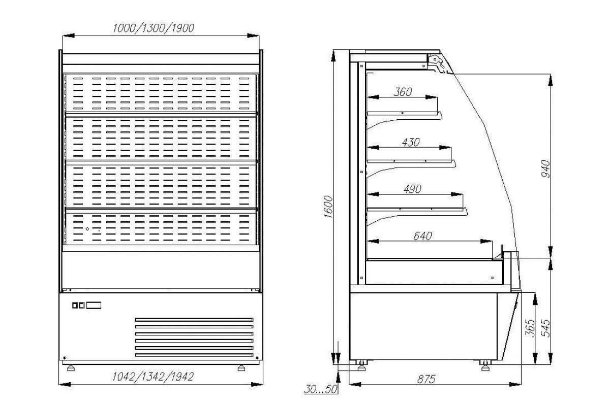 - глубина выкладки (полок) — 490/430/360 мм;