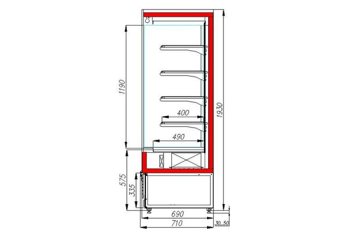 Холодильная горка гастрономическая Carboma FC20-07 VM 0,7-1 Light (фронт X0, цвет по схеме, фронт стандартный цвет)