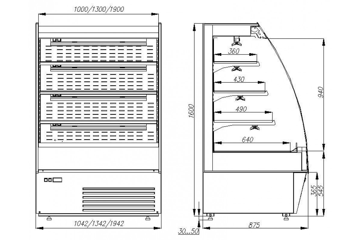 Холодильная горка универсальная Carboma F16-08 VV 1,0-1 0300 Standart фронт X1 версия 2.0 (9006-9005)