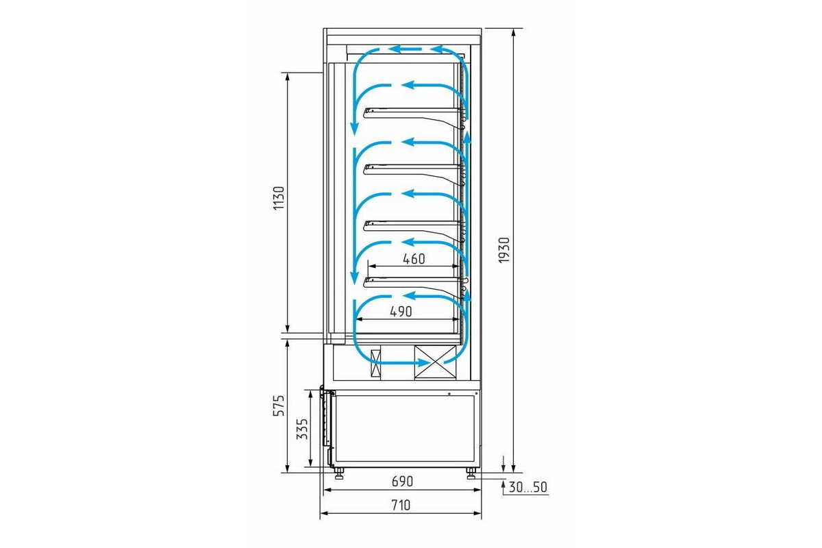 Холодильная горка гастрономическая Carboma F13-07 VM 0,7-2 (Carboma 1260/700 ВХСп-0,7, индивидуальное исполнение)