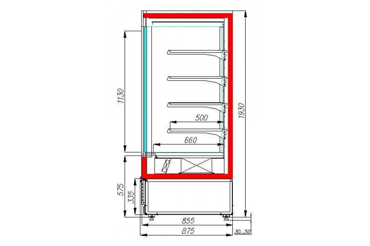 Это модель со встроенным холодом (в нижнем отсеке). Боковые панели выполнены из металла с ППУ изоляцией, оснащены стеклопакетами. Укомплектована 4-мя навесными полками с кронштейнами, которые могут регулироваться по высоте/наклону. Установлен защитный бампер.
