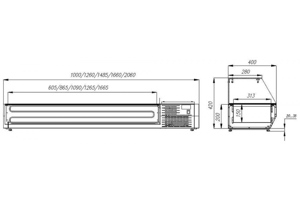 Витрина холодильная Сarboma A40 SM 1,7-G 0430 — настольная, используется в кафе, ресторанах, пиццериях, барах, супермаркетах. Выполнена с выемками под установку гастроемкостей формата GN1/3 (приобретаются отдельно). Данная модель оборудована стеклянным колпаком и светодиодной подсветкой, что делает ее выигрышным вариантом для демонстрации клиентам предлагаемых ингредиентов для пиццы, салатов, разнообразных холодных закусок.