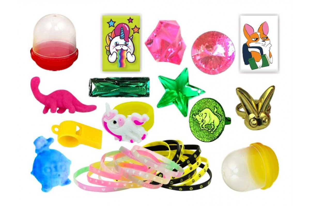 Микс игрушек, упакованных в прозрачные капсулы диаметром 45 мм с цветными крышками. Производство Китай