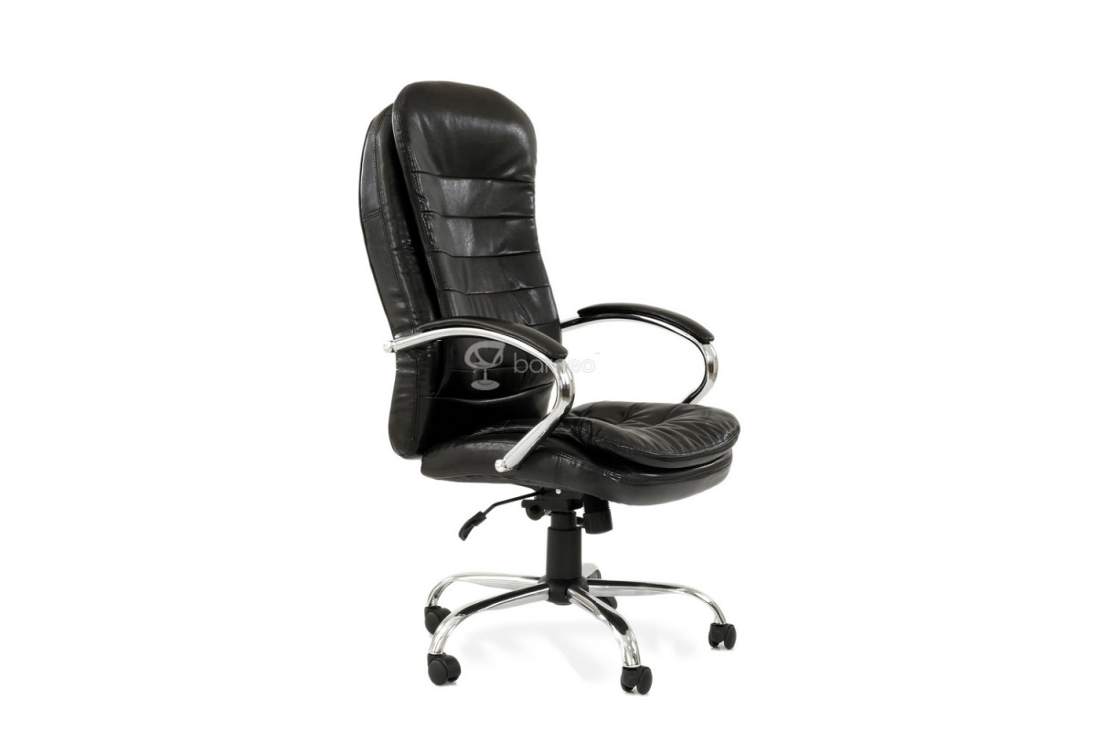 Кресло Barneo K-29 на колесиках, хром, черная кожа