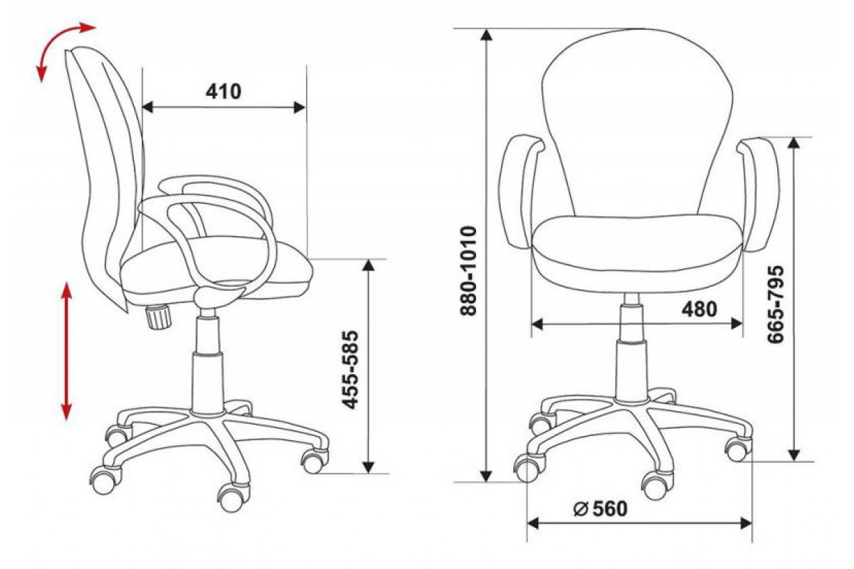 Высота кресла/стула MIN: 1010