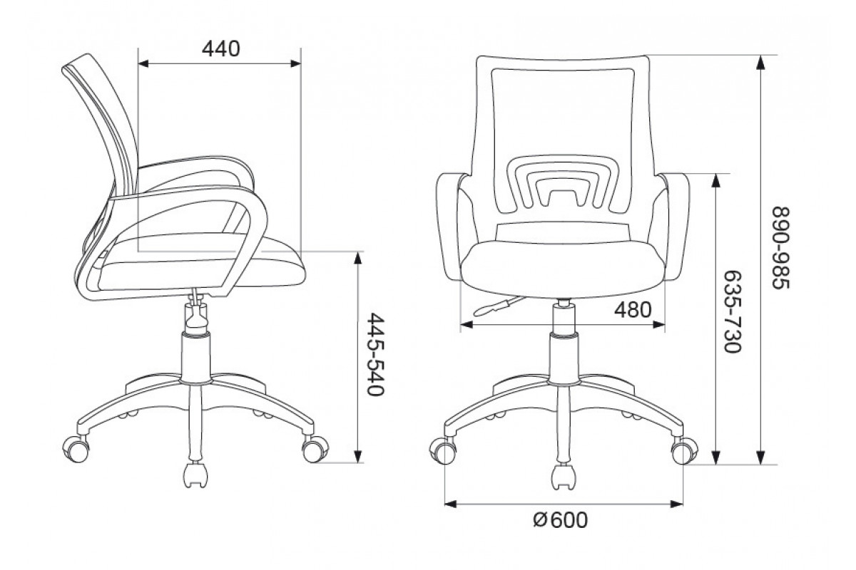 Высота с подлокотниками MIN: 645