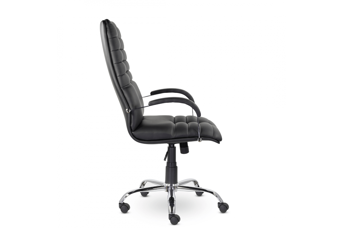 Современное кресло руководителя имеет вертикальную и горизонтальную прострочки, делящие спинку и сидение на небольшие прямоугольники. Тем самым создается интересный дизайн и кресло становится еще мягче. Подлокотники с мягкими накладками и крестовина выполнены из хрома.