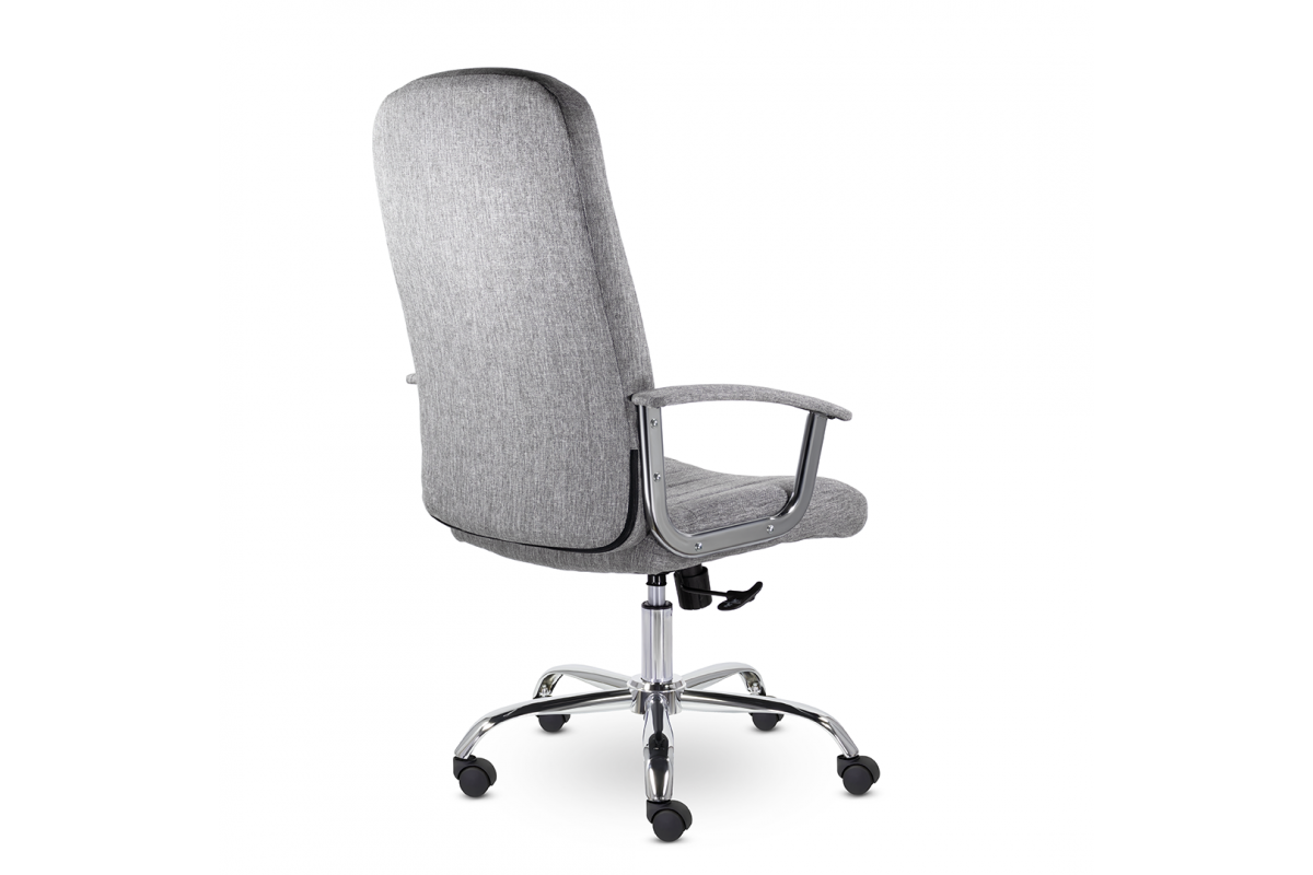 Кресло руководителя с мягкими увеличенными подушками. Широкая эргономичная спинка имеет две горизонтальные прострочки, которые отделяют подголовник от основной части спинки. Благодаря глубокому сидению, в кресле будет удобно человеку среднего и высокого роста. Длинные хромированные подлокотники способствуют комфортной посадке в кресле.
