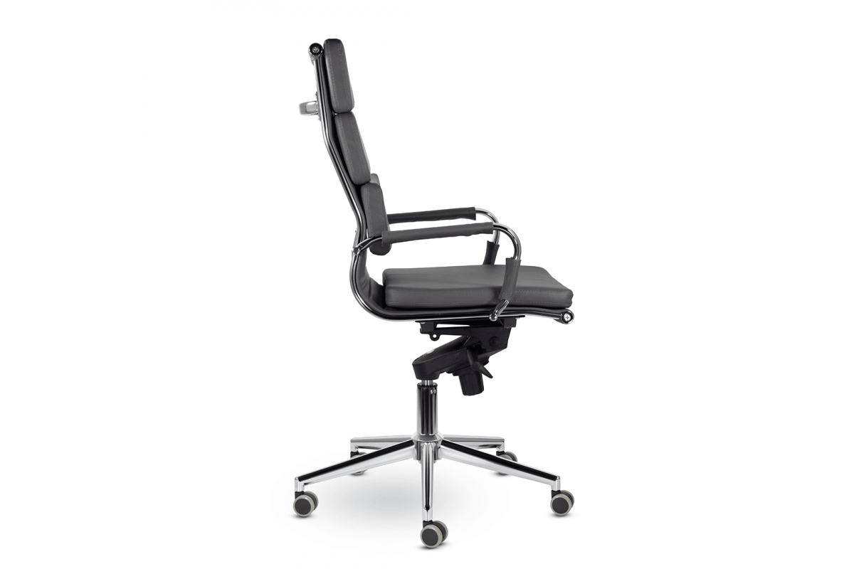Кресло руководителя в современном металлическом каркасе. Комфорт создается благодаря мягким элементам спинки и сиденья. Зеркальный хромированный каркас и узкая крестовина задают современный стиль. Кресло отлично смотрится в строгих и открытых кабинетах. Механизм качания - мультиблок.