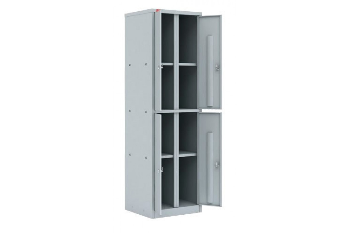 Шкаф разборный металлический двухсекционный с 4-мя отделениями. В каждой секции: одна полка. Двери с индивидуальным врезным замком. Шкаф предназначен для хранения архивов, офисной и бухгалтерской документации. Полимерное порошковое покрытие светло-серо