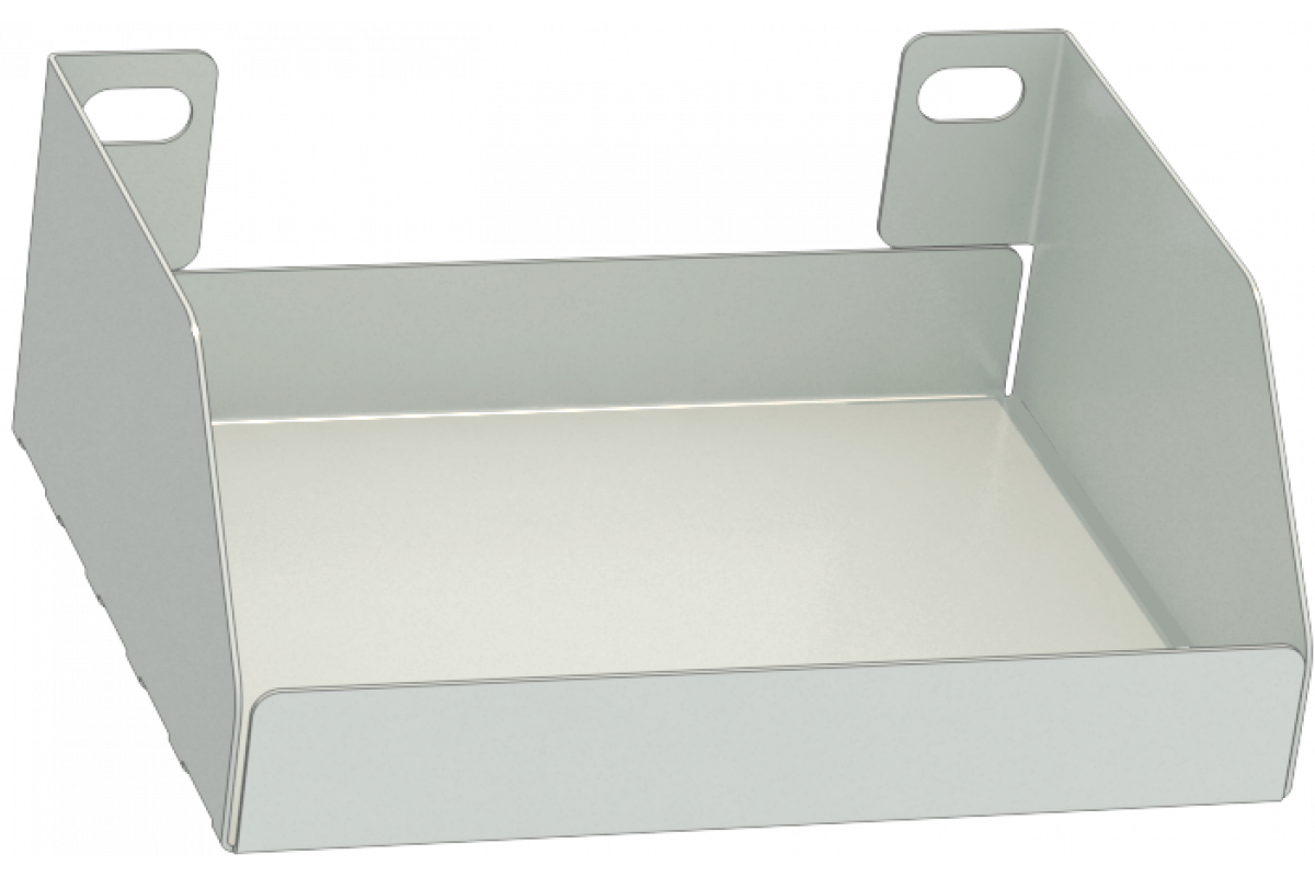 Полка изготавливается из холоднокатаной стали толщиной 0.8мм. Выполнена в виде небольшой коробчатой конструкции с боковыми ребрами. Они добавляют конструкции дополнительную жесткость и исключают выпадение предметов.