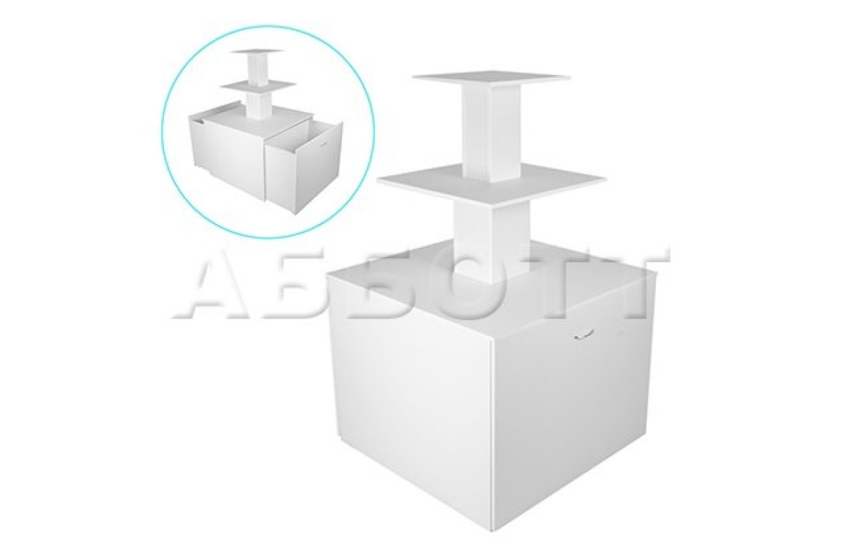 PВTL-144-406090-2D Стол-пирамида Н1440,полки400х400,600х600,900х900,ЛДСП 16мм,бел.ш.2ящ.мал.колеса в Томске