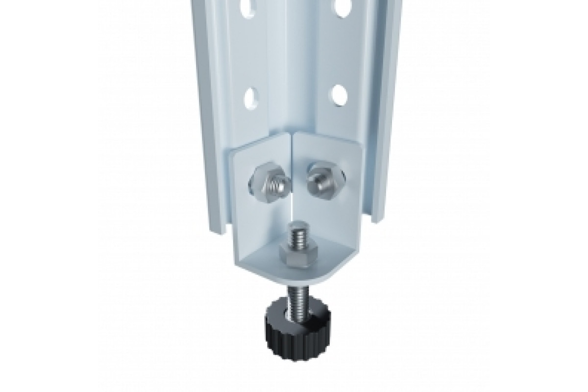 Регулируемая опора является дополнительным элементом быстро-сборного металлического стеллажа серии МС. Регулируемая опора устанавливается в металлический подпятник и позволяет компенсировать неровности пола. Нагрузка не должна превышать 500 кг на стелл