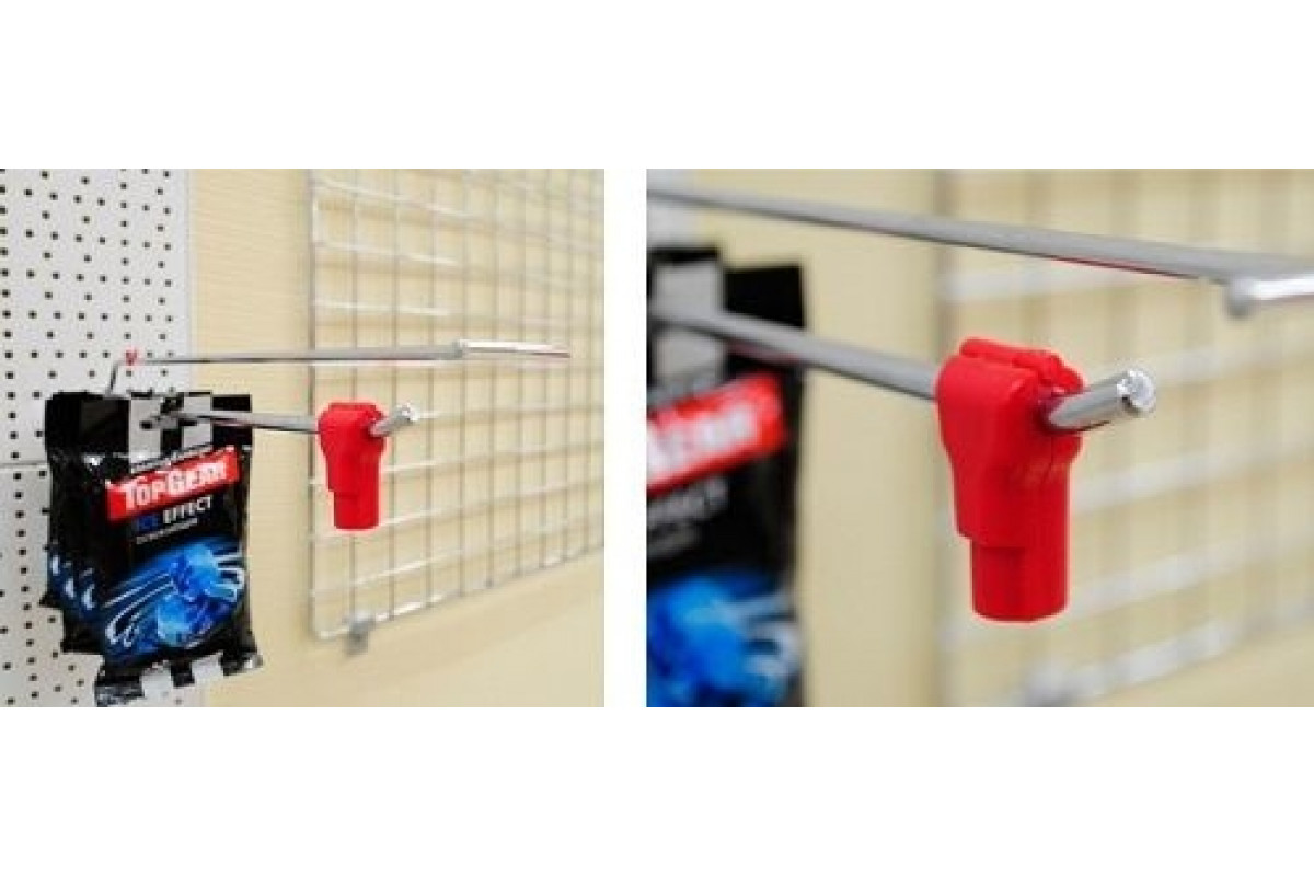 Замок для защиты товара, размещенного на крючках. Используется с крючками толщиной 5-6 мм с загнутым концом или шариком. Снимается с помощью ключа S058 . Для многоразового использования. Ключи приобретаются отдельно