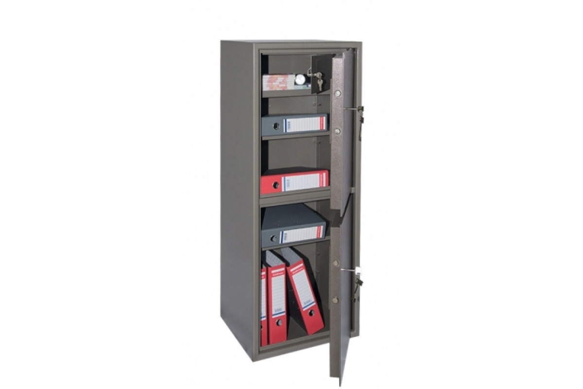 Сейф КМ 1200т/2 представляет собой сварную двух секционную металлическую конструкцию. Корпус изготовлен из стального листа толщиной 2,5 мм, дверь — из листа 5 мм, изнутри усиленная панелью толщиной 1,4 мм. Сейф оснащен отсеком ограниченного доступа (тр