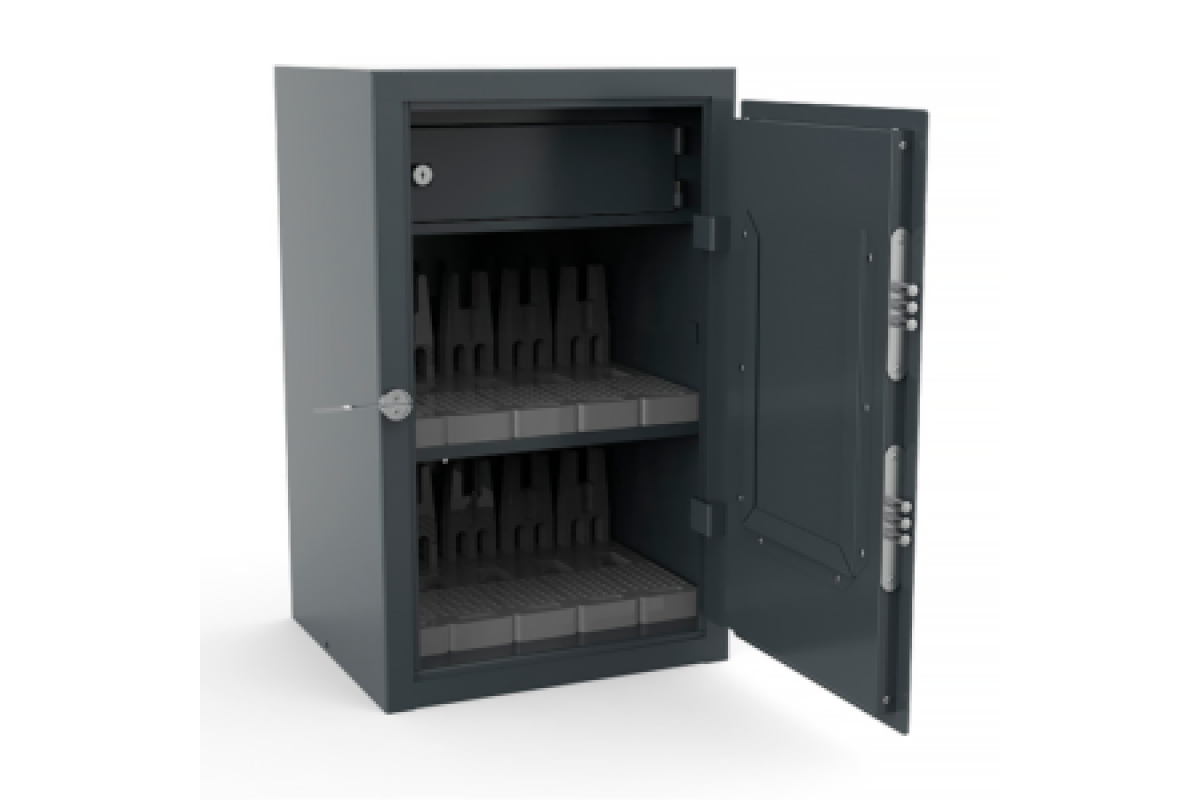 Сейф оружейный СО-650 предназначен для хранения 10 пистолетов ПМ и Ярыгина, а также боеприпасов и принадлежностей для технического обслуживания данного оружия.