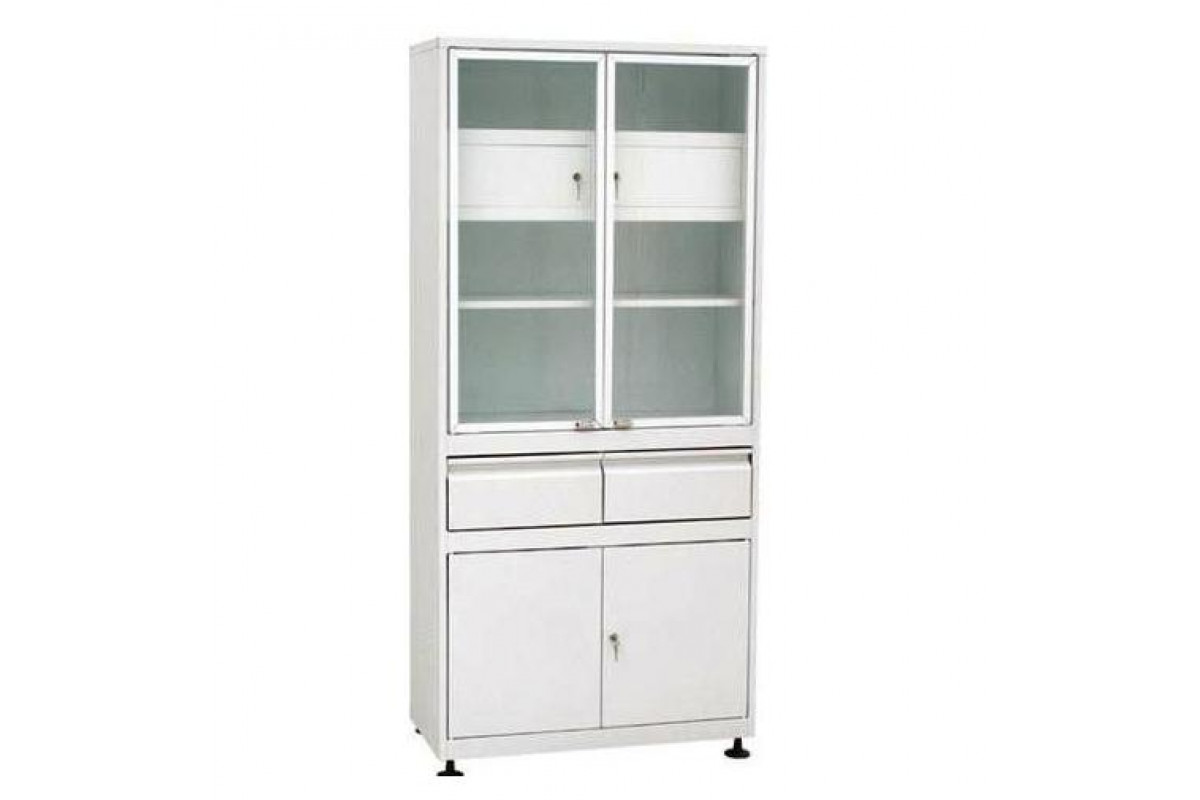Шкаф 2-ух створчатый стекло/металл ШМС-2-Р-2 с регулируемыми опорами с 2-мя выдв ящиками