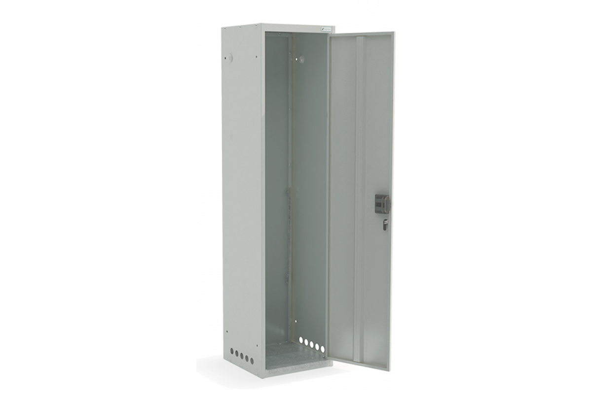 В шкафах серии ШГР 40-1 и ШГР 40-2 для надежного крепления баллонов предусмотрены один карабин, длиной 50 мм (пожарный) и две цепи. В модели ШГР 40-1 цепь длиннозвенная длиной 416 мм, в модели ШГР 40-2 длиной 520 мм.Шкафы серии ШГР изготавливаются из высококачественной конструкционной холоднокатаной стали. Металлический шкаф состоит из сборно-разборного корпуса и одной распашной двери. Корпус состоит из основания, усиленного оцинкованным настилом, крыши, двух боковых стенок и одной задней стенки. Сборка корпуса осуществляется на винтах и саморезах. Дополнительную жесткость основанию придает приварное ребро жесткости.Дверь шкафа имеет коробчатую конструкцию и так же усилена приварным, продольным ребром жесткости (одним или двумя в зависимости от модели шкафа). Ребро жесткости представляют собой сложно-катанный профиль, шириной 90 мм, высотой 15 мм, длина ребра жесткости зависит от модели шкафа.Каждая боковая стенка шкафа имеет одно специальное отверстие для газовой магистрали (шланга), диаметром 31.5 мм, расположенные в верхней части боковой стенке шкафа и пять отверстий для вентиляции, диаметром 31.5 мм, расположенные в нижней части боковой стенки. Нижние, вентиляционные отверстия нужны для предотвращения скоплений газа в случае утечки.В модели ШГР 40-1 дверь устанавливаются на внутренние, осевые петли, с диаметром оси не менее 5 мм, изготовленные из качественной, инструментальной стали и высокопрочного полиамида, которые обеспечивают бесшумное и плавное открытие двери на 110 градусов, ускоряют и облегчают процесс сборки шкафа. Долговечность крепления дверей, 40000 циклов открываний, в соответствии с требованием ГОСТ 16371-93.Каждый шкаф серии ШГР оснащен одним почтовым замком повышенной секретности (не менее 2000 комбинаций) и одной пластиковой евро-ручкой для пожарного шкафа (замок для пожарного шкафа). Почтовые замки неподвижно и прочно фиксируются на дверях, в соответствии с требованием ГОСТ 16371-93, и обеспечивают легкое отпирание и запирание. При необходимости, металлический шкаф ШГР комплектуется петлей под навесной замок.Шкафы серии ШГР имеют атмосферостойкое полимерное покрытие, полученное при использовании термоотверждаемых порошковых красок на полиэфирной основе. Фактура покрытия мелкая шагрень. Цвет светло-серый RAL 7035. Полимерное покрытие устойчиво к перепадам температур и влаги. Допускается эксплуатация щитов в температурных режимах окружающего воздуха от «+40»°С до «- 60»°С, при влажности до 85%.Шкафы серии ШГР выпускаются с полным комплектом фурнитуры, необходимой для хранения баллонов. Крепежные элементы крепятся к задней стенке шкафа, в уже имеющиеся отверстия Ф 6,5 мм, с помощью болтов М 6х16 и гайки М 6.В комплект фурнитуры входят самоклеящаяся наклейка «Осторожно Газ», размером 90х100 мм и 2 пластиковые заглушки, диаметром 32 мм.
