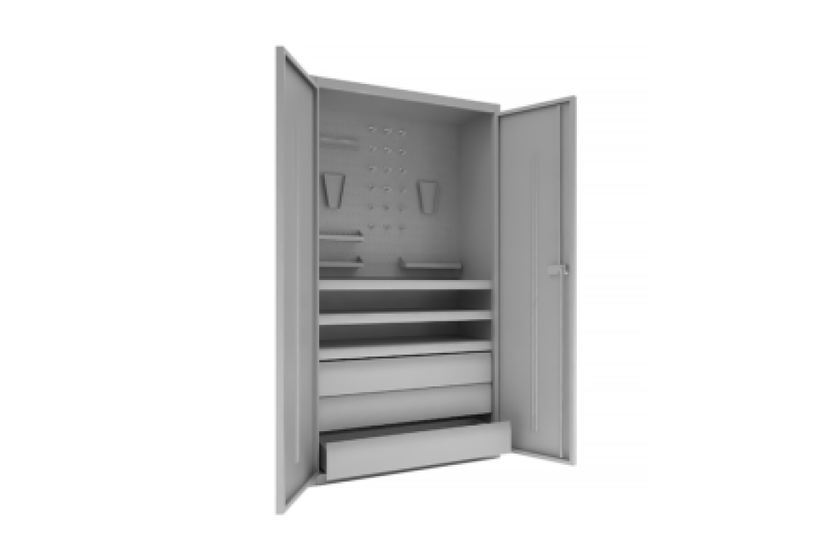 Металлический инструментальный шкаф серии ИШ-1850 предназначен для хранения инструментов и оснастки на промышленных предприятиях, в сервисных компаниях и производственных учреждениях.
