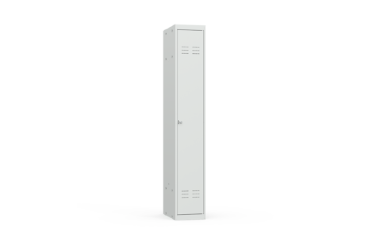 Односекционный металлический шкаф для одежды имеет полную внутреннюю комплектацию: полку для головных уборов, металлическую перекладину для вешалок и два пластиковых крючка для одежды, проушину для навесных замков. Размер секций обеспечивает комфортное размещение верхней одежды, в том числе зимней. Конструкция предусматривает возможность установки дополнительной полки для обуви.