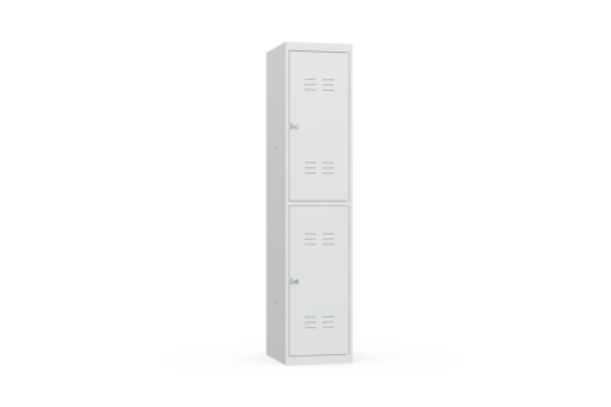 двухсекционный металлический шкаф для одежды имеет две ячейки с индивидуальными замками,