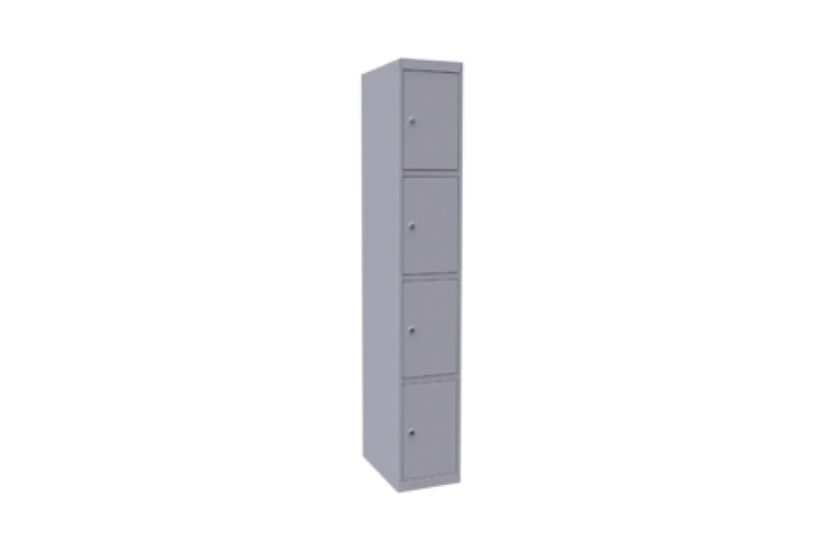 Шкаф имеет 4 ячейки размером 440х300х500 мм каждая. Вместительные габариты ячеек позволяют комфортно размещать в них пакеты и сумки средних размеров.