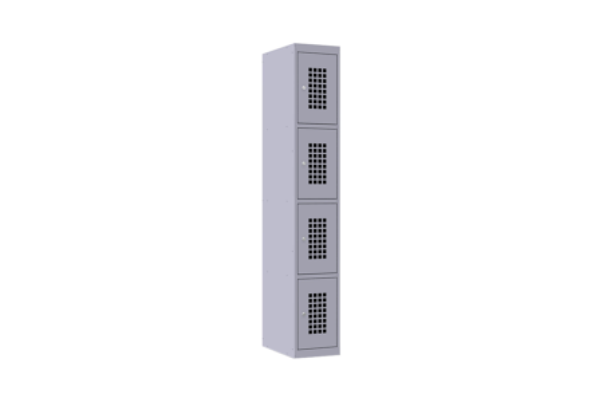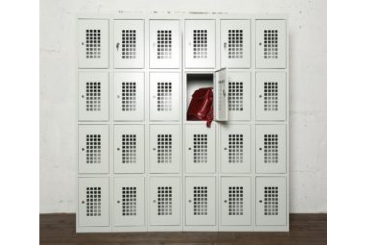 Шкаф с перфорированными дверцами обеспечивает повышеный уровень безопасности, позволяя контролировать наличие и вид оставленных на хранение в ячейках вещей. Это особенно актуально для крупных торговых сетей, где ввиду высокой проходимости принимаются усиленные меры по недопущению террористических угроз. Перфорация на дверях — это 32 квадратных отверстия, имеющих размеры 25х25 мм.