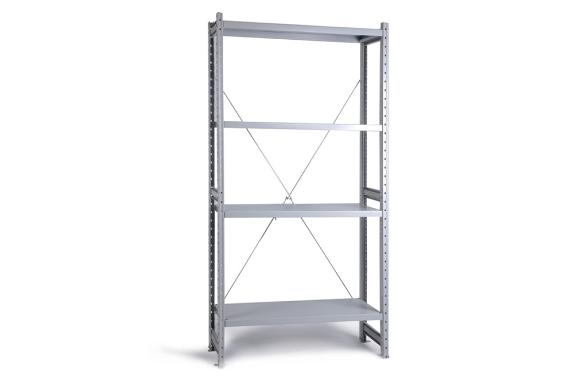 - Все элементы стеллажа окрашены полимерной (порошковой) краской RAL 7035 светло-серого цвета.
