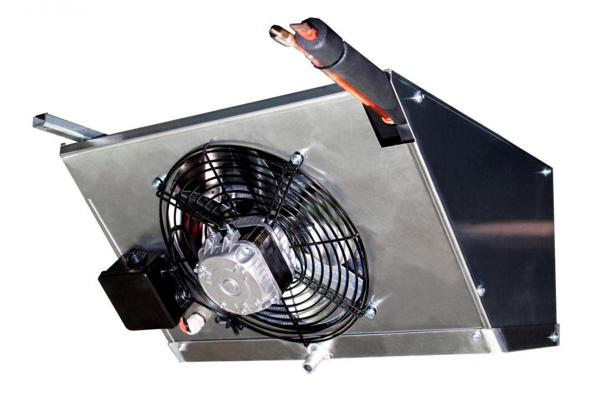 - Воздухоохладитель с корпусом из алюминия с установленными ТЭНами и вентиляторами.