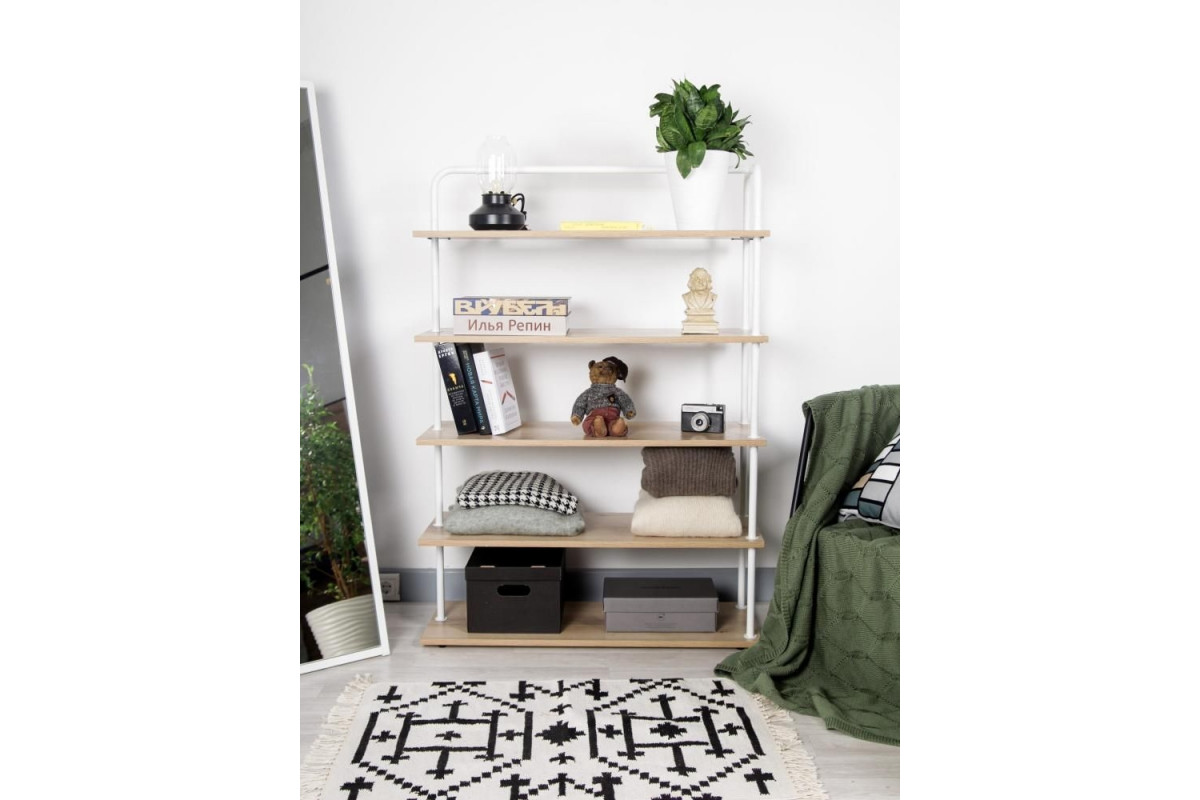 Стеллаж Отрада широкий с 5 полками из ЛДСП, 900х330х1260Н, белый/дуб в Томске