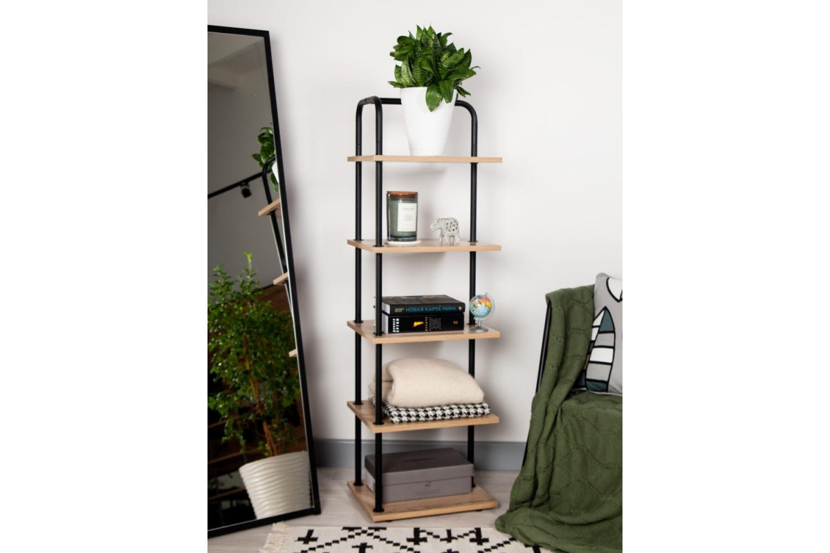 Еще один стильный предмет интерьера серии Отрада – стеллаж. Пять полок из высококачественного ЛДСП лучшего европейского производителя Egger, стальная труба диаметром 20мм с порошковым покрытием модных оттенков, надежные крепления – делают конструкцию п