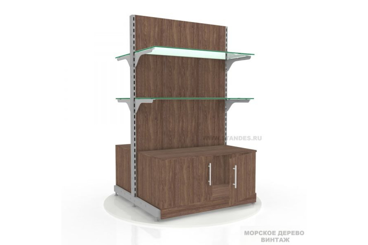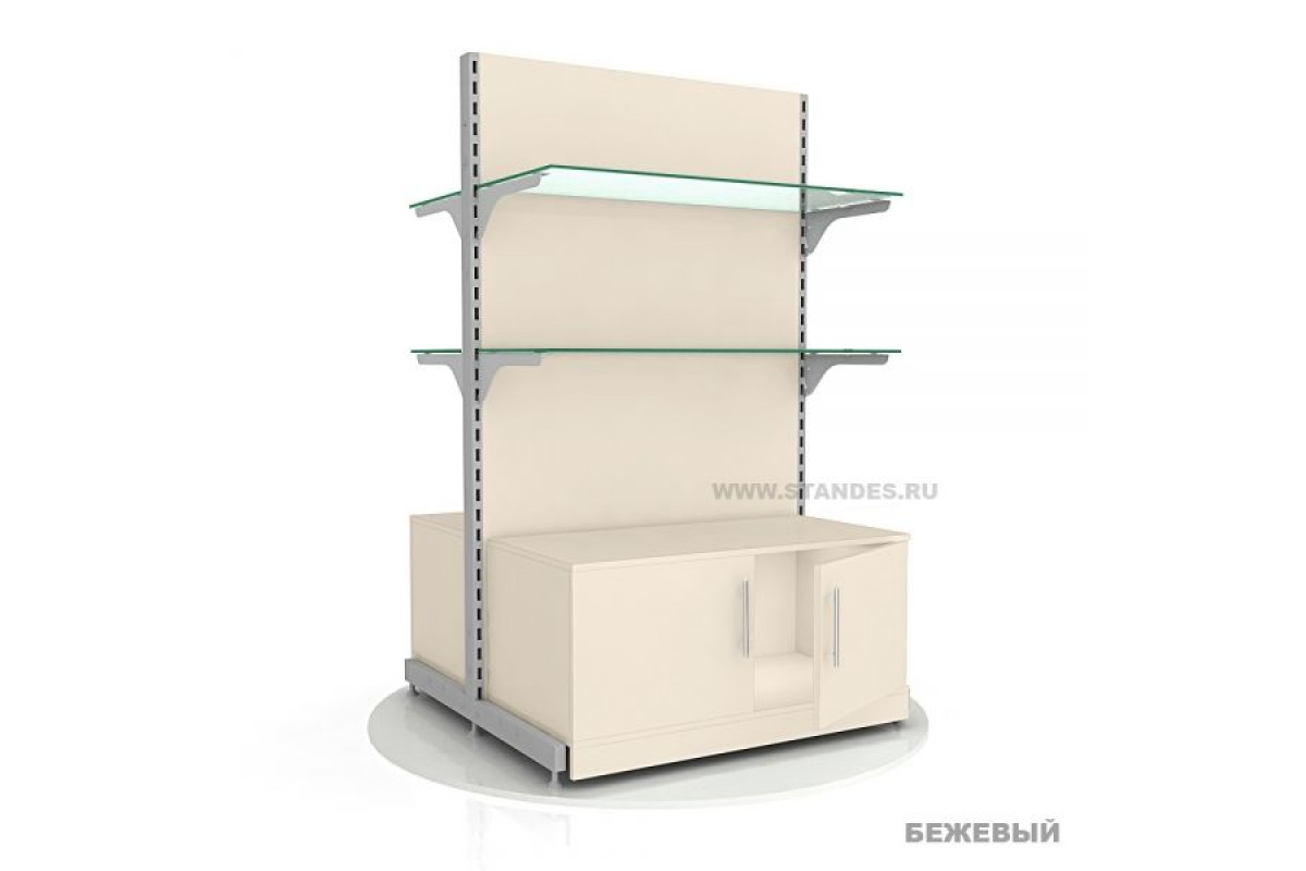 Стеллаж островной со стеклянными полками и накопителем дверцы распашные V 4-04