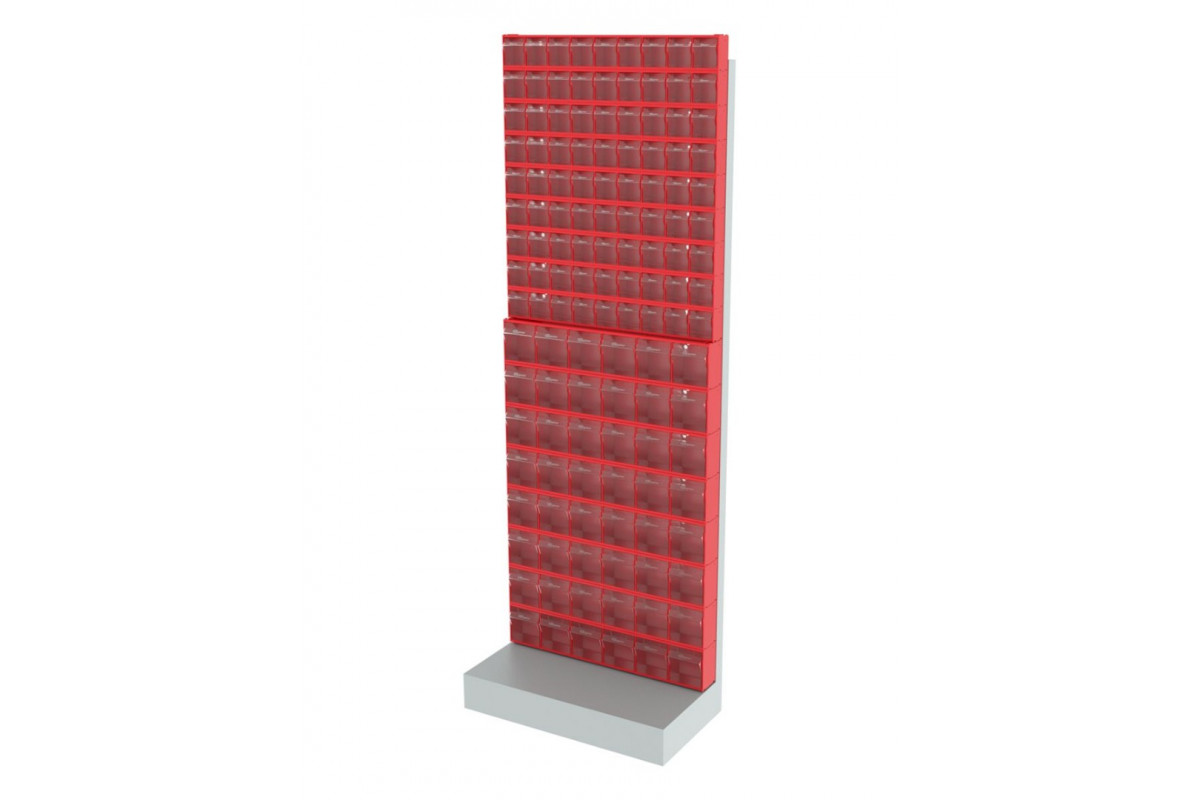 Комплектация: Рама (605х325х1650) V404 напольная односторонняя с основанием - 1 шт. Короб откидной Стелла-техник F-600-9 , 600х68х78 мм, 9 ячеек, красный, прозрачный -9 шт. Короб откидной Стелла-техник F-600-6 , 600х96х112 мм, 6 ячеек, красный, прозрачный – 8 шт. Упаковка.