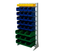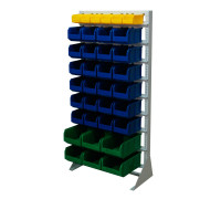 Стойка оснащена ящиками различной вместимости, в количестве 36 шт., в каждом из которых предусмотрен специальный кармашек для опознавательной карточки - это позволяет эффективно систематизировать помещенные туда инструменты и приспособления. Сборка данной конструкции не требует от пользователя каких-либо специальных знаний и умений. Стойка не займет много места и сэкономит полезную площадь в мастерской, на складе или в торговом помещении.