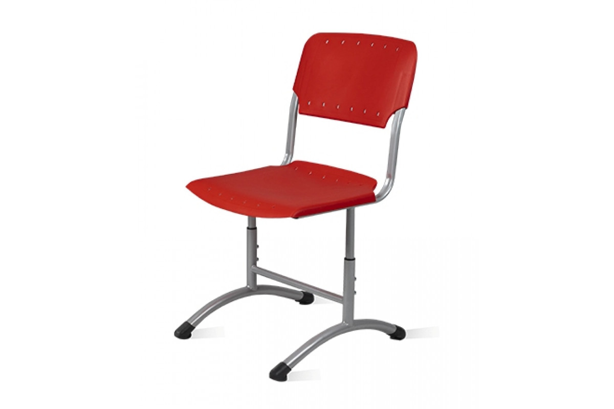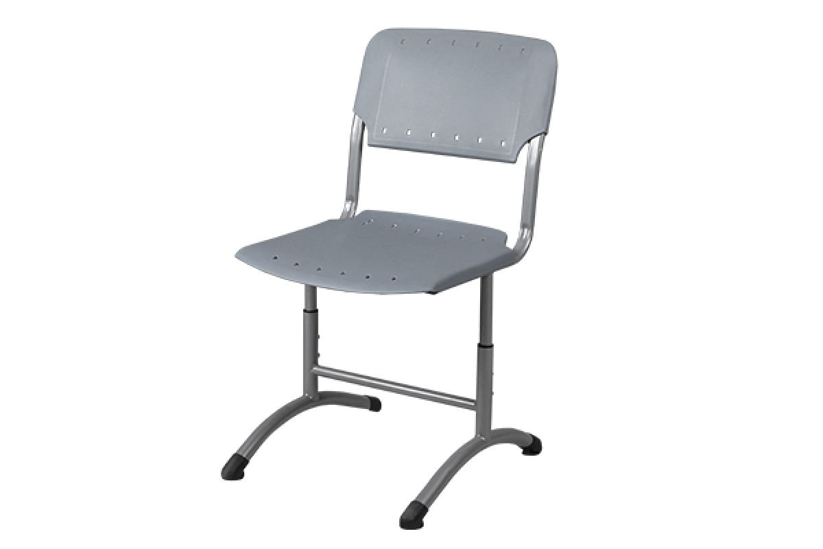 Концы труб закрыты пластиковыми заглушками и заглушками-опорами. Сиденье и спинка выполнены из пластика. Форма сиденья и спинки способствует сохранению осанки. Соединение каркаса с пластиковым сиденьем осуществляется с помощью 2-х винтов М6, спинка плотно надевается на каркас без дополнительного крепления. Стул изготавливается в двух ростовых группах в трех диапазонах регулирования (3-5, 5-7) в соответствии
