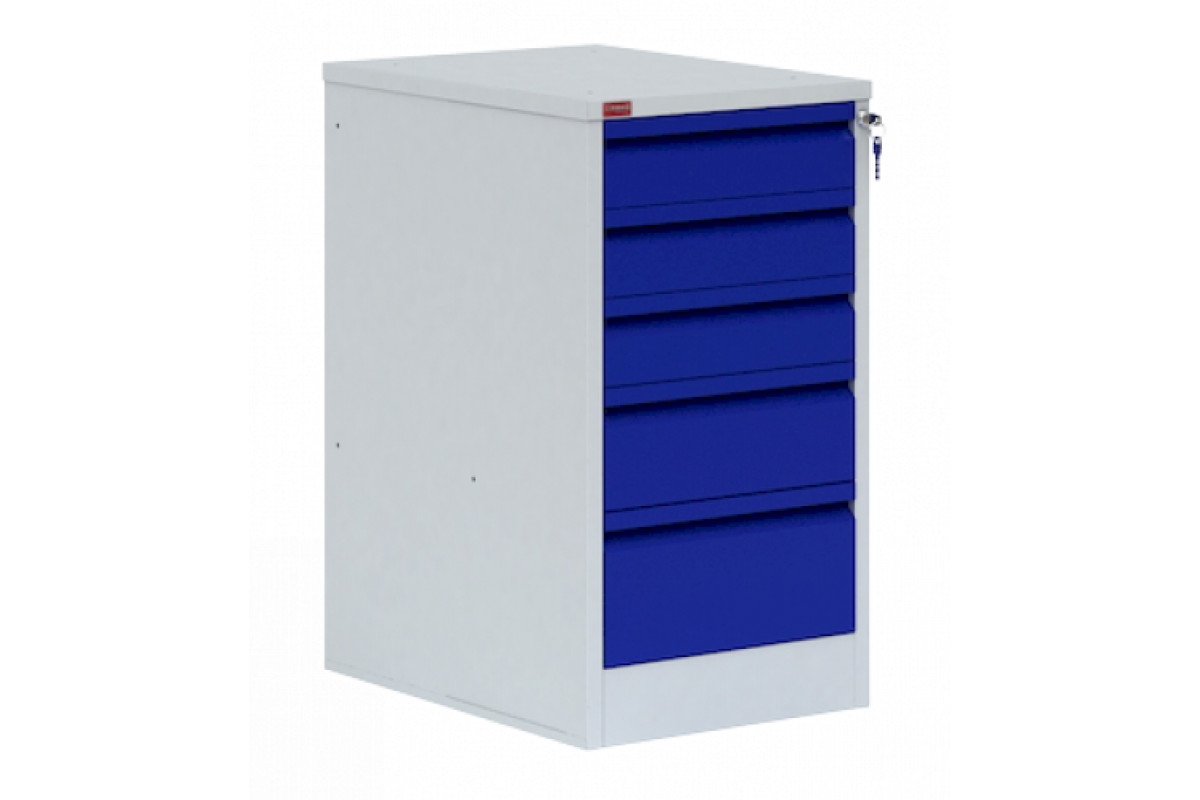 Тумба для металлического верстака может использоваться как с верстаком, так и как отдельный элемент металлического мебели. Состоит из 5-ти выдвижных ящиков на телескопических направляющих, запирающихся на общий замок. Нагрузка