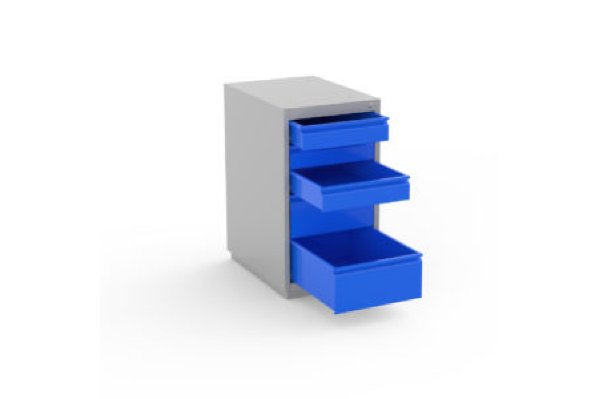 Ящики окрашены в синий цвет RAL 5015, корпус светло-серого цвета RAL 7035.