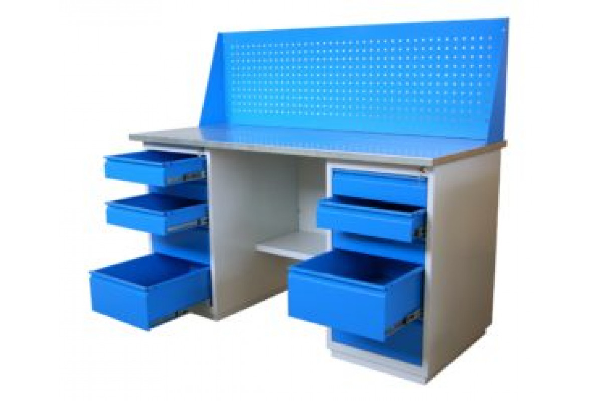 Верстак изготовлен из листовой холоднокатаной стали толщиной не менее 1 мм.