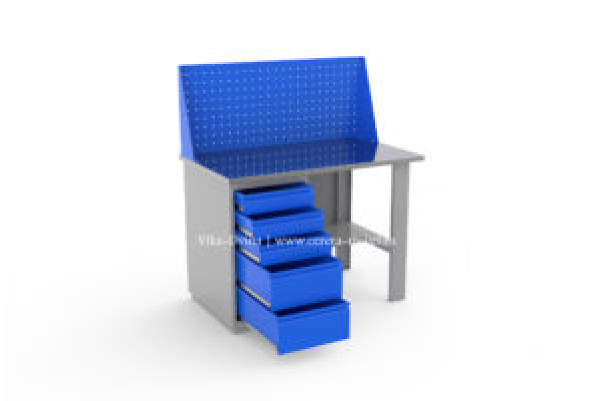 Верстак изготовлен из листовой холоднокатаной стали толщиной не менее 1 мм.