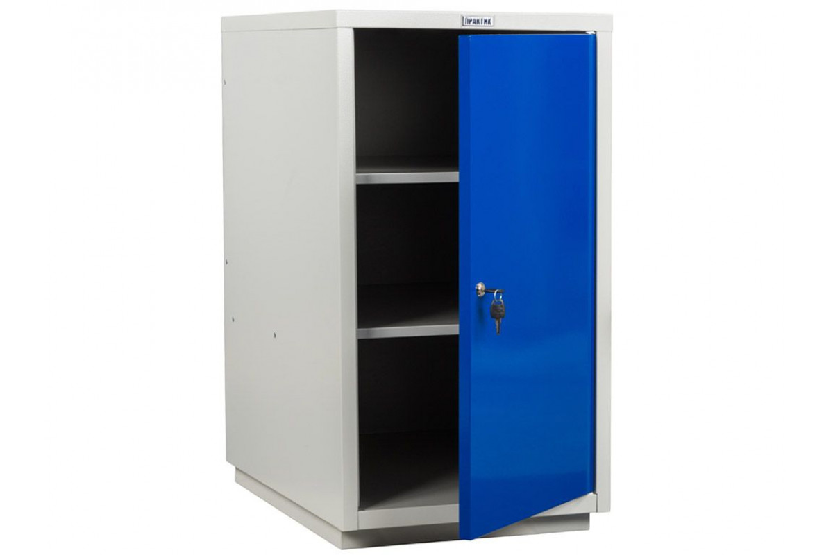 Верстак состоит из тумбы WD1 и опоры F1 .Тумба укомплектована 2-мя съемными регулируемыми полками и 1 дверцей, возможность смены стороны открывания двери. Ключевой замок на дверце тумбы. Нагрузка на полку 30 кг.