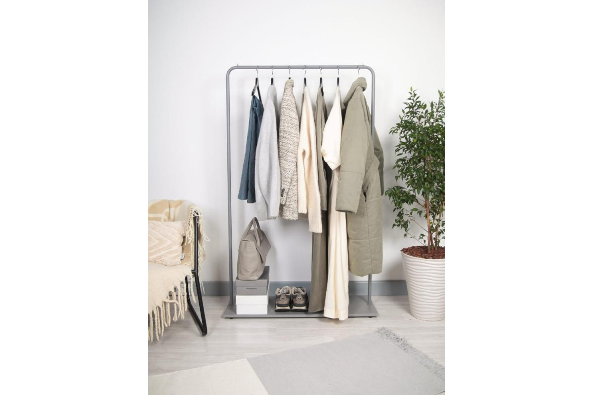 Вешалка напольная Отрада с полкой для обуви из ЛДСП, 920х330х1500H, серый/серый в Томске