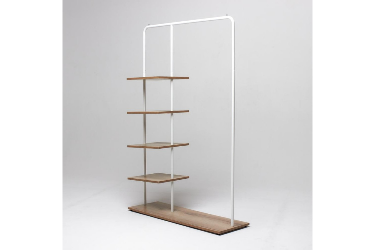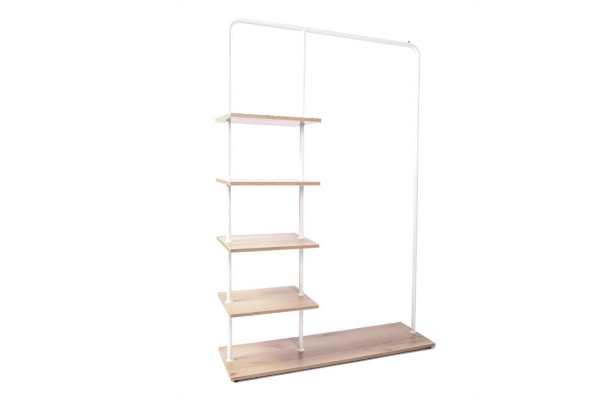 Вешалка напольная Отрада с пятью полками для одежды и обуви из ЛДСП, 1000х330х1500Н, белая/дуб в Томске
