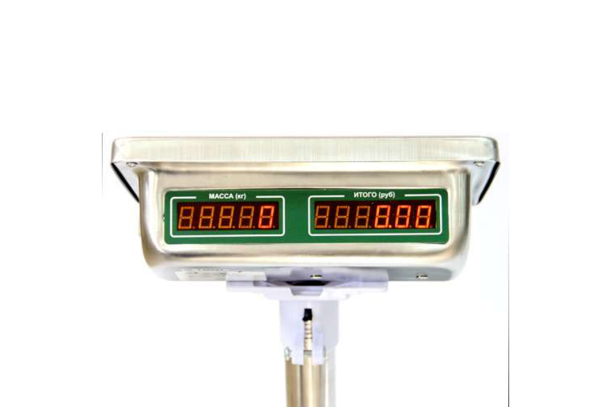 Электронные торговые напольные весы Мах=600кг, Min=2000г, e=100/200г. Блок индикации из нержавеющей стали, ЖКИ (LCD). Количество разрядов индикации: масса - 5, цена - 5, стоимость - 6. платформа 600х800мм нерж. Функция Тара, принудительное обнуление, 6 программируемых клавиш быстрого набора цены, суммирование покупок. Питание от сети 220В, аккумулятора 4В/4Ач. Регулировка подсветки индикатора.