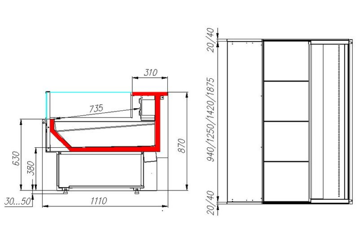 - Экспозиционная поверхность, столешница из шлифованной нержавеющей стали;