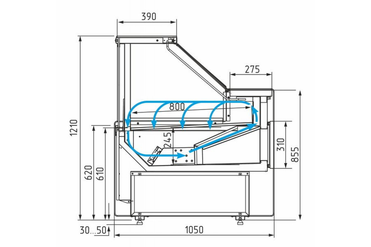 Отдельностоящие витрины приобретаются только вместе с боковинами. При заказе нескольких витрин с одинаковым температурным режимом для установки в линию достаточно заказать 2 боковины на всю линию.