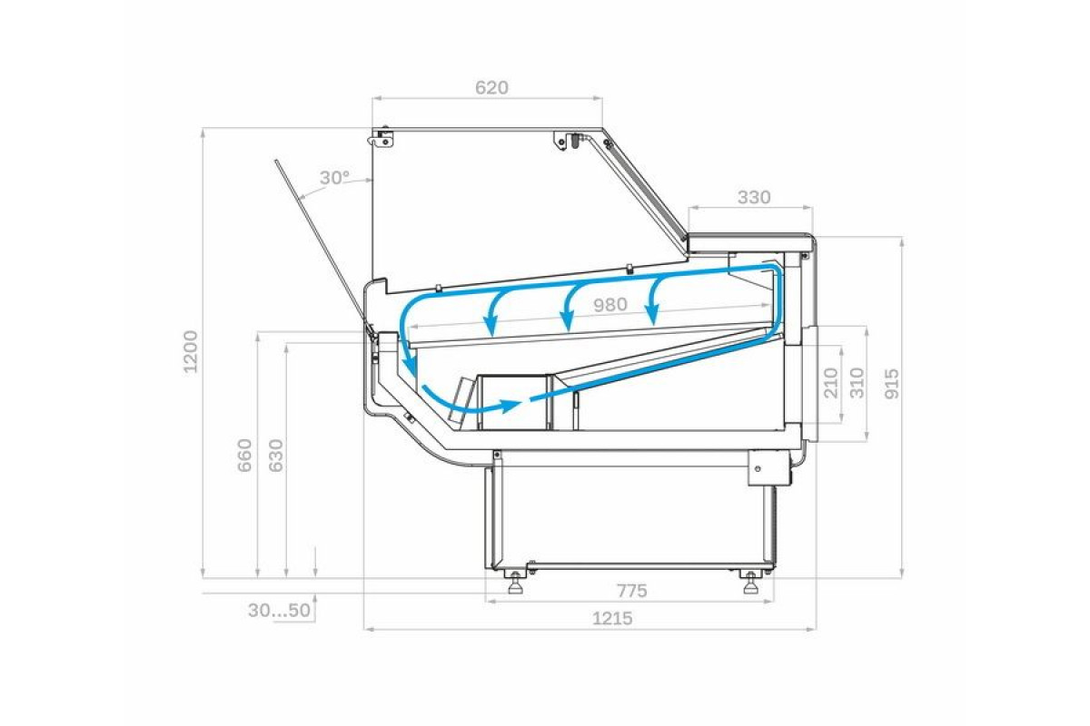 Витрина холодильная Carboma GC120 VM 1,5-1 (динамика) 3004 идеальна для презентации и продажи мяса, птицы, колбасных, молочных и других гастрономических изделий. Эргономичный кубический дизайн с откидным фронтальным стеклом. Превосходная обзорность. Прямое фронтальное стекло можно открывать на 30°.
