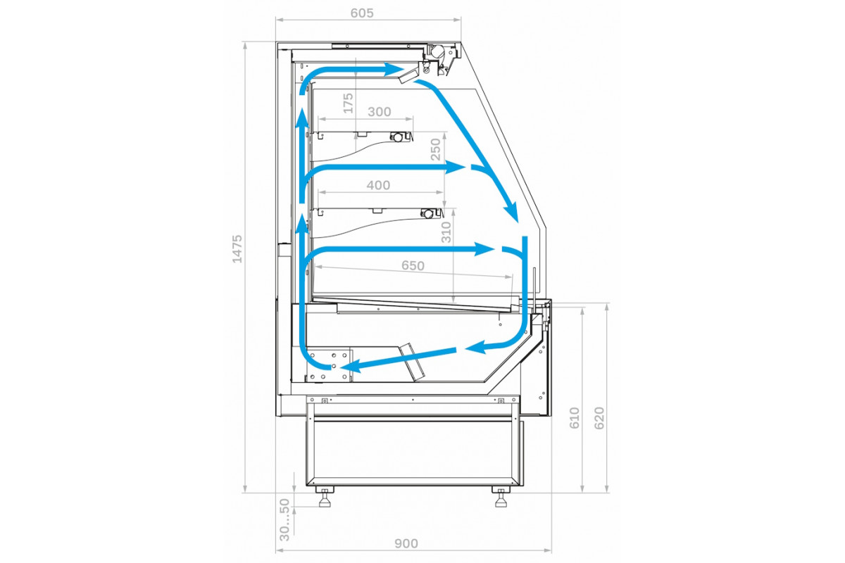 Модель без боковин предназначена для установки нескольких витрин в линию и не может использоваться как отдельностоящая. При заказе нескольких моделей для установки в линию достаточно приобрести две боковины: для первой и последней витрины.